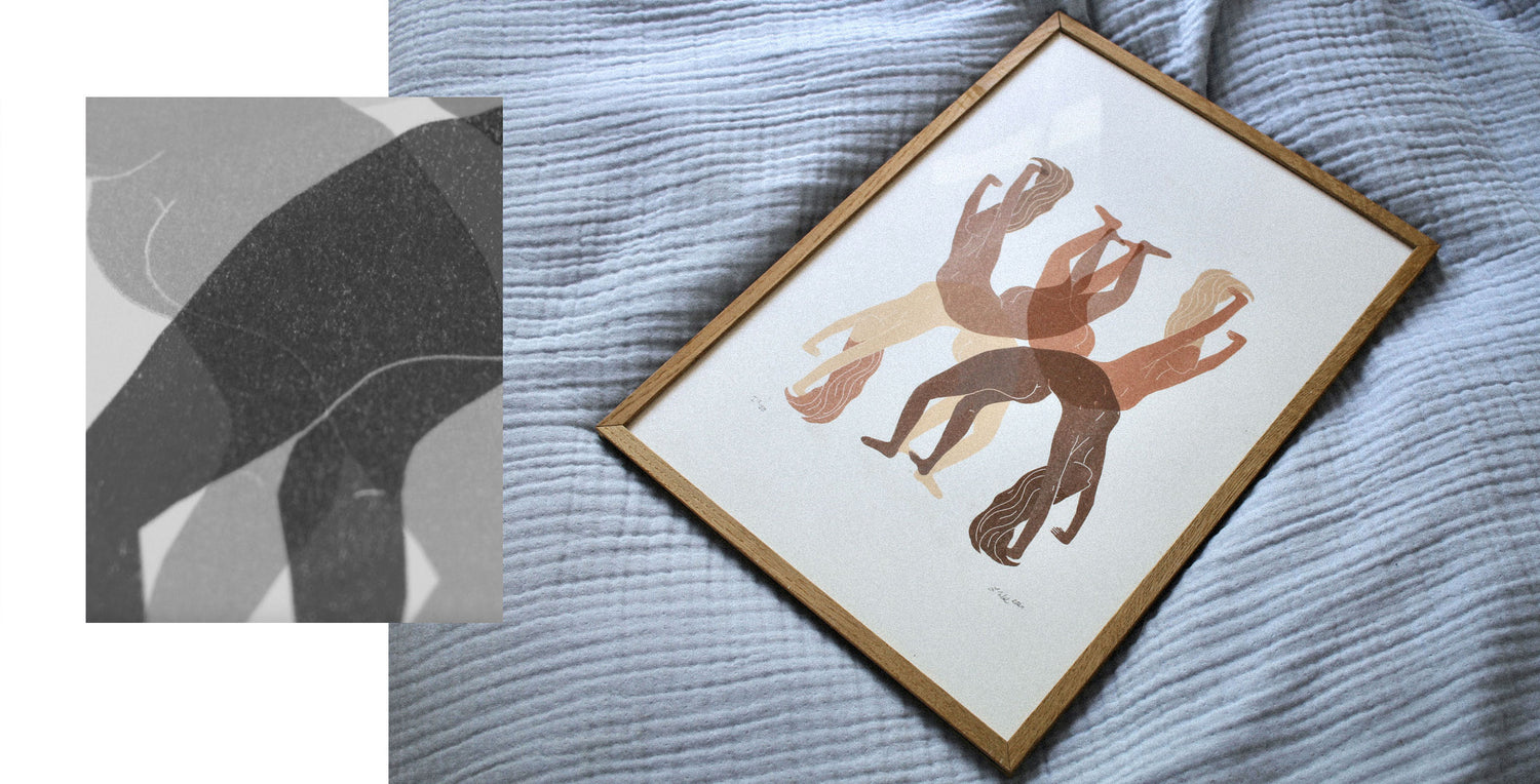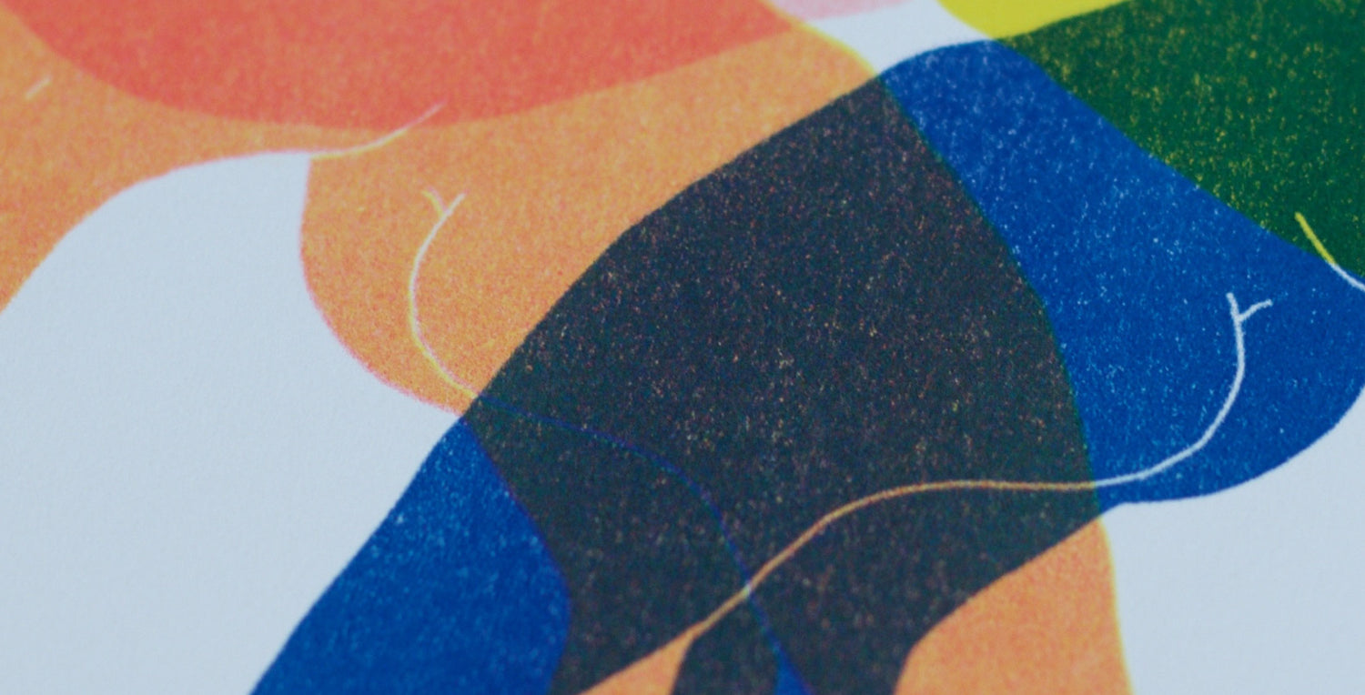 Coming originally from screen printing, I love the color effects that one can create when layers of color are being printed on top of each other. The way they mix and the mistakes that happen if the frame is not 100% precisely placed, create a beautiful randomness. The same effect can be created when printing riso prints. Layers of color are being printed on top of each other – One color at a time, readjusting the sheet between every step.. What a treat for our eyes.